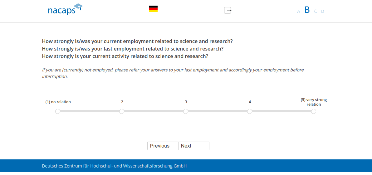 If you are (currently) not employed, please refer your answers to your last employment and accordingly your employment before interruption.
