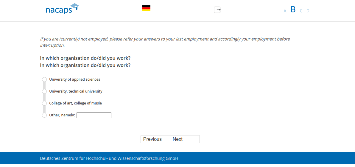 If you are (currently) not employed, please refer your answers to your last employment and accordingly your employment before interruption.