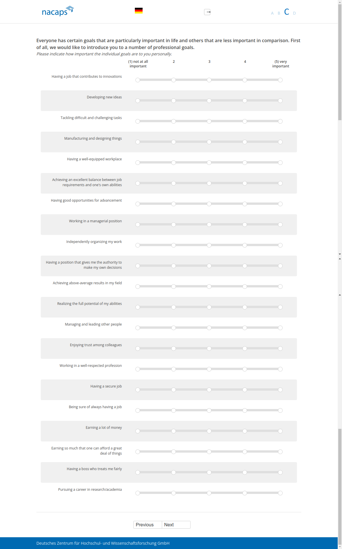 Inventory to assess the work value orientations (BWH-Fragebogen)