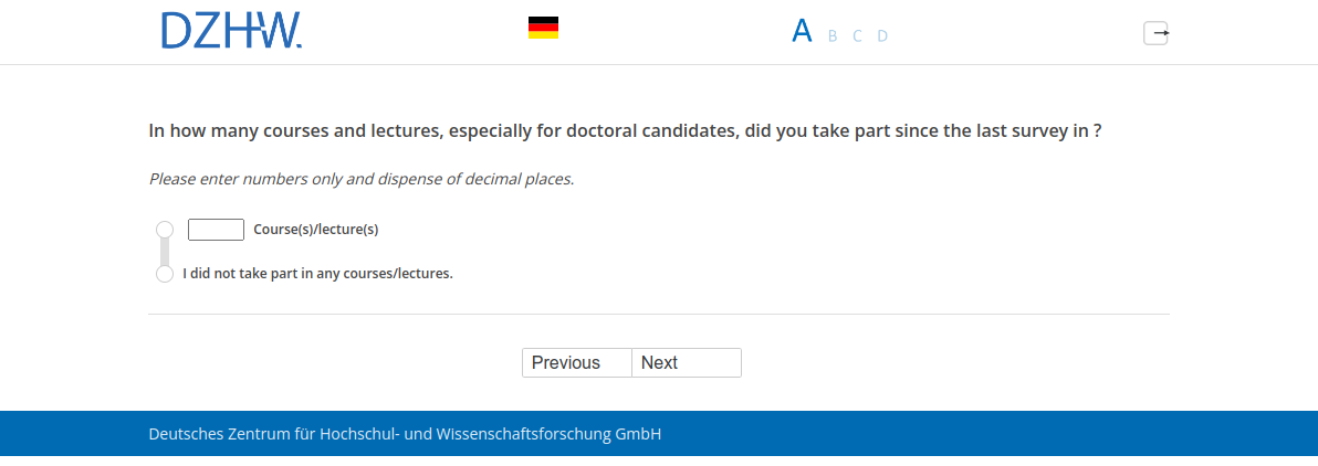 In how many courses and lectures, especially for doctoral candidates, did you take part since the last survey in #{PRELOADcpl008.value}?