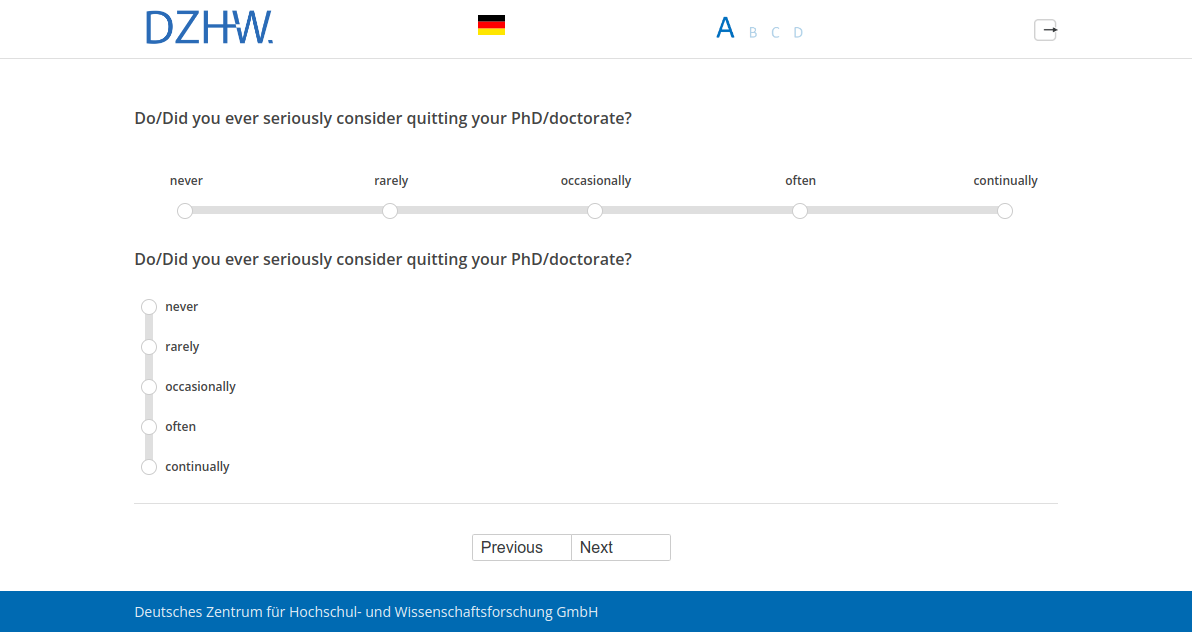 To what extent do/did the following reasons play a role in this?,To what extent did the following reasons play a role in your decision to quit the PhD/doctorate?