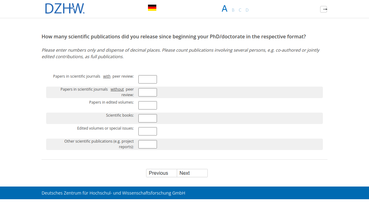 Please enter numbers only and dispense of decimal places. Please count publications involving several persons, e.g. co-authored or jointly edited contributions, as full publications.