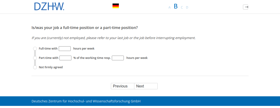 If you are (currently) not employed, please refer to your last job or the job before interrupting employment.