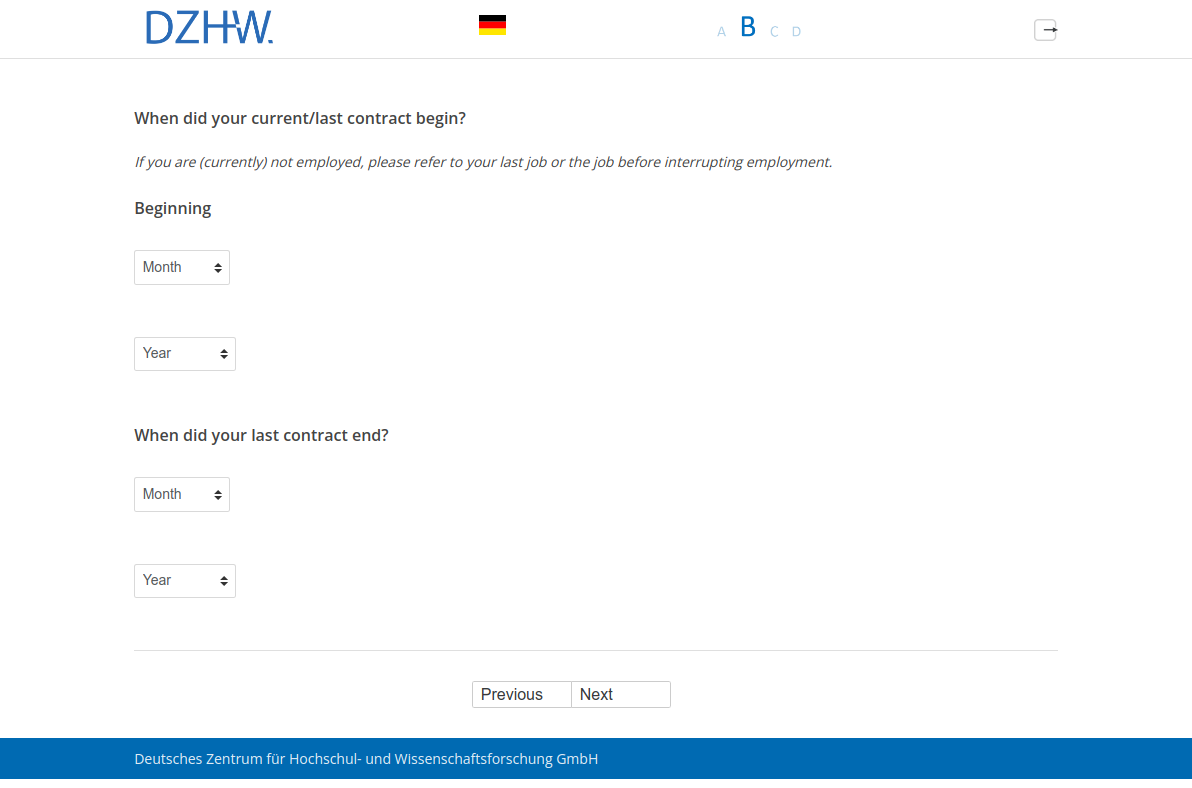 If you are (currently) not employed, please refer to your last job or the job before interrupting employment.