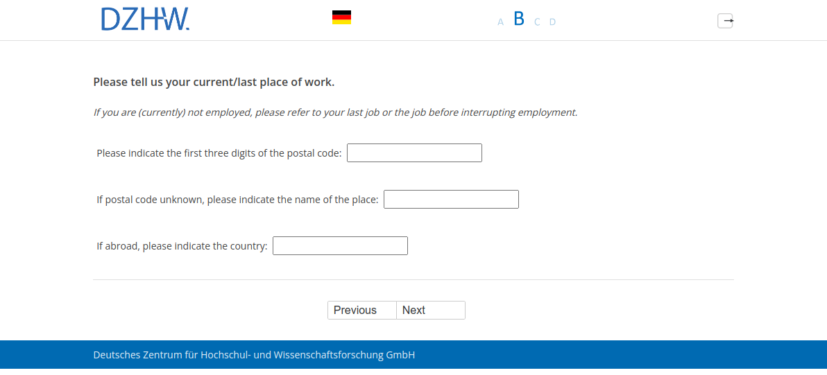 If you are (currently) not employed, please refer to your last job or the job before interrupting employment.