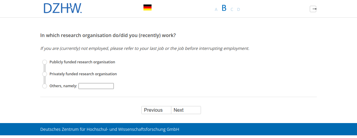 If you are (currently) not employed, please refer to your last job or the job before interrupting employment.