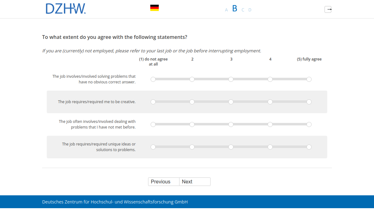 If you are (currently) not employed, please refer to your last job or the job before interrupting employment.
