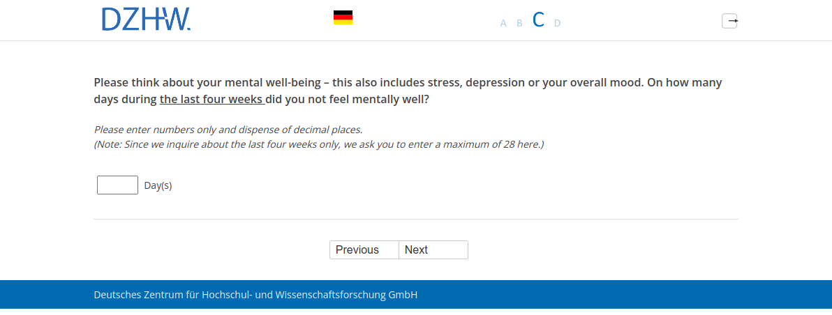 Please think about your mental well-being – this also includes stress, depression or your overall mood. On how many days during the last four weeks did you not feel mentally well?