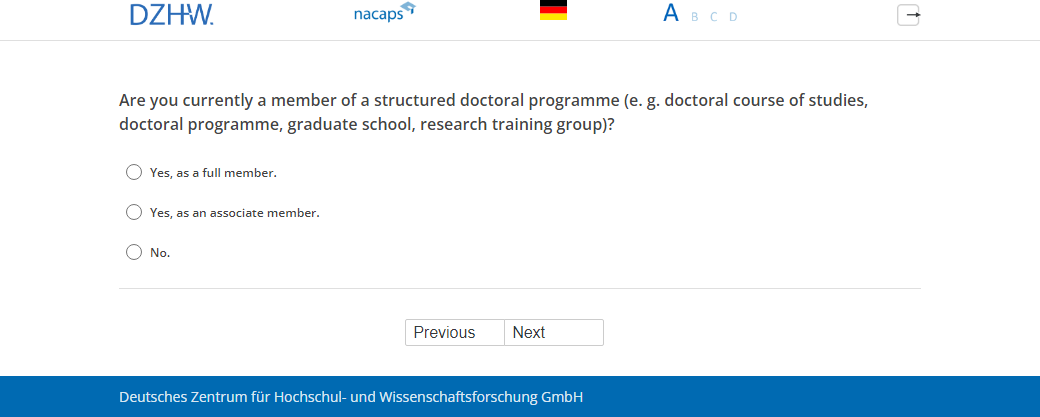 Are you currently a member of a structured doctoral programme (e.g. doctoral course of studies, doctoral programme, graduate school, research training group)?