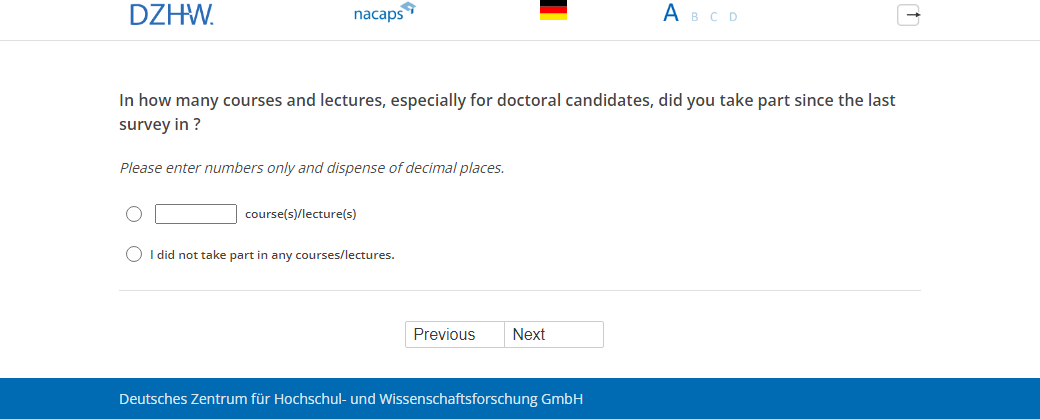 In how many courses and lectures, especially for doctoral candidates, did you take part since the last survey in #{PRELOADdpl008.value}?
