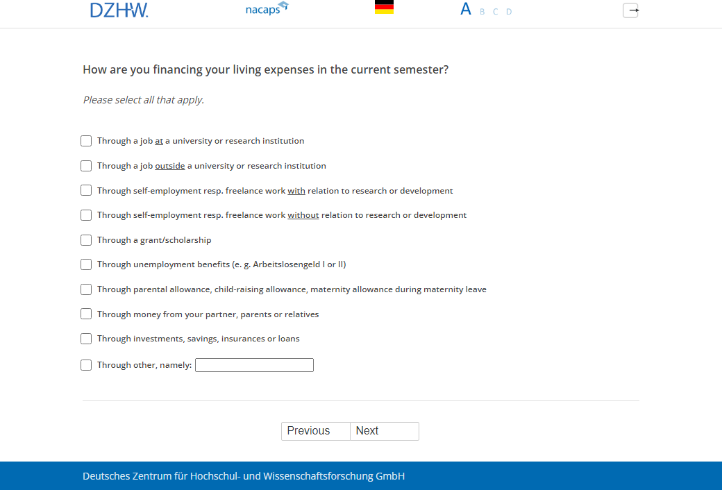 Question A17: Questionnaire of Nacaps 2018 - wave 4
