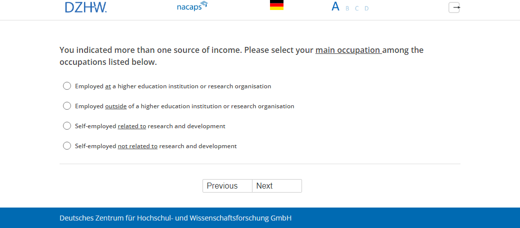 You indicated more than one source of income. Please select your main occupation among the occupations listed below.