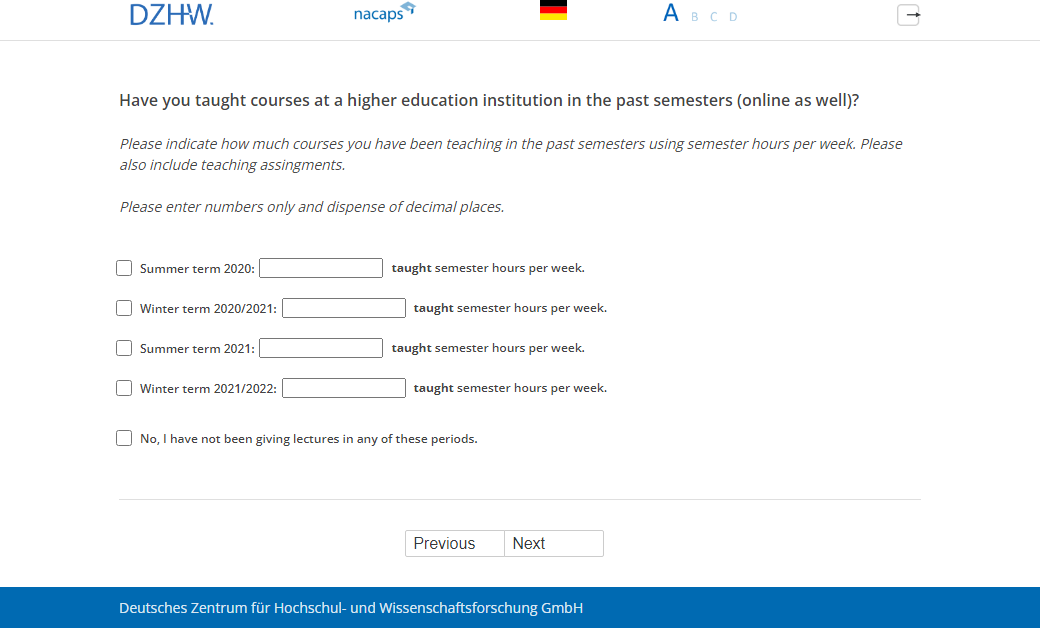 Have you taught courses at a higher education institution in the past semesters (online as well)?
