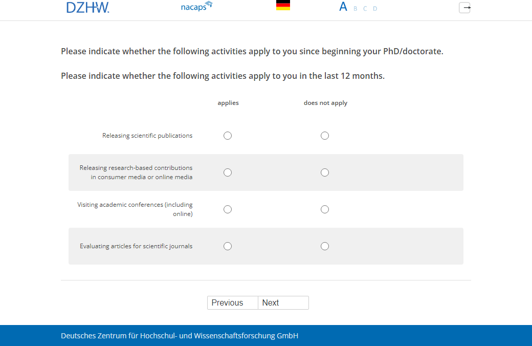 Welcome to the doctoral candidates and doctroal holders survey "Nacaps"!
