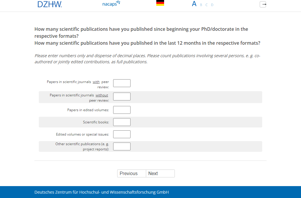 How many scientific publications have you published since beginning your PhD/doctorate in the respective formats?,How many scientific publications have you published in the last 12 months in the respective formats?