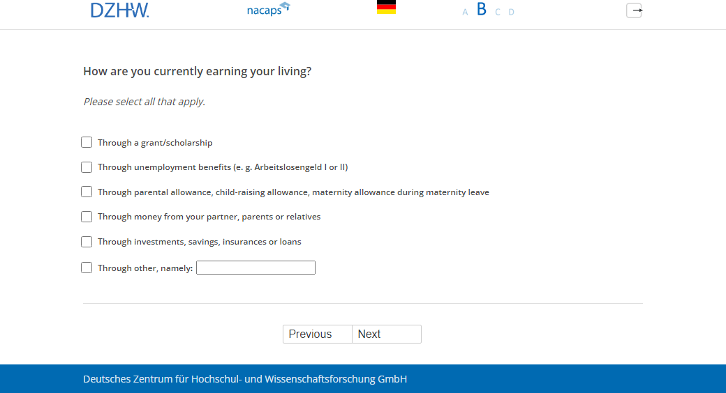 Question B03: Questionnaire of Nacaps 2018 - wave 4