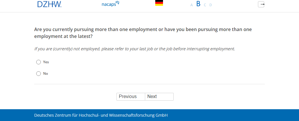 If you are (currently) not employed, please refer to your last job or the job before interrupting employment.