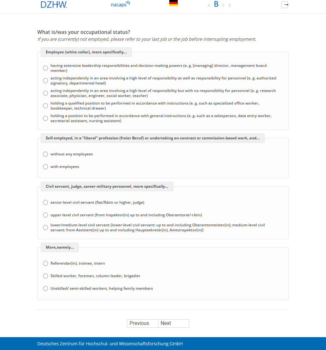 If you are (currently) not employed, please refer to your last job or the job before interrupting employment.