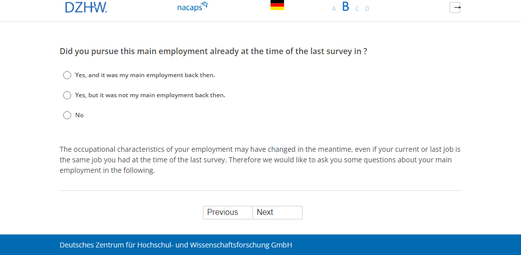 Did you pursue this main employment already at the time of the last survey in #{PRELOADdpl008.value}?