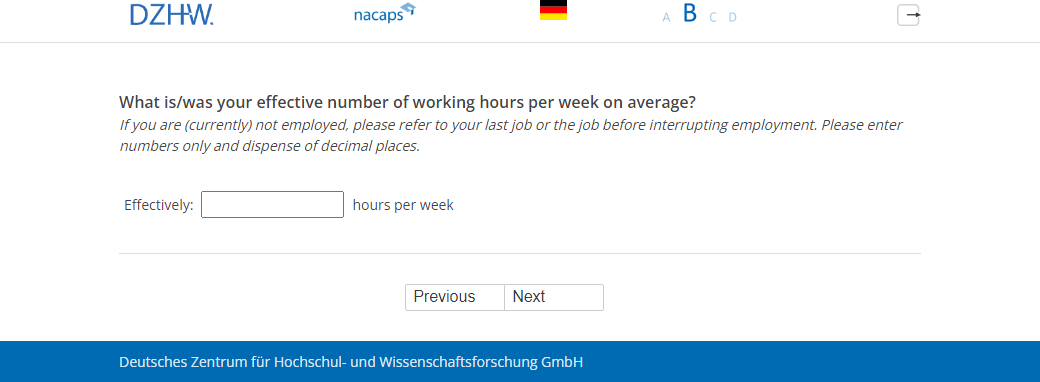 If you are (currently) not employed, please refer to your last job or the job before interrupting employment. Please enter numbers only and dispense of decimal places.