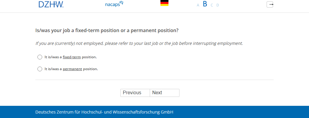 If you are (currently) not employed, please refer to your last job or the job before interrupting employment.