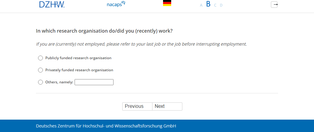 If you are (currently) not employed, please refer to your last job or the job before interrupting employment.