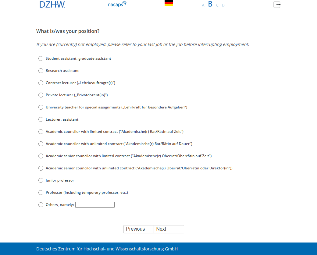 If you are (currently) not employed, please refer to your last job or the job before interrupting employment.