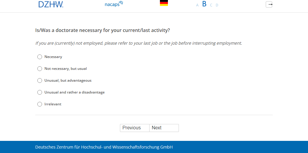 If you are (currently) not employed, please refer to your last job or the job before interrupting employment.