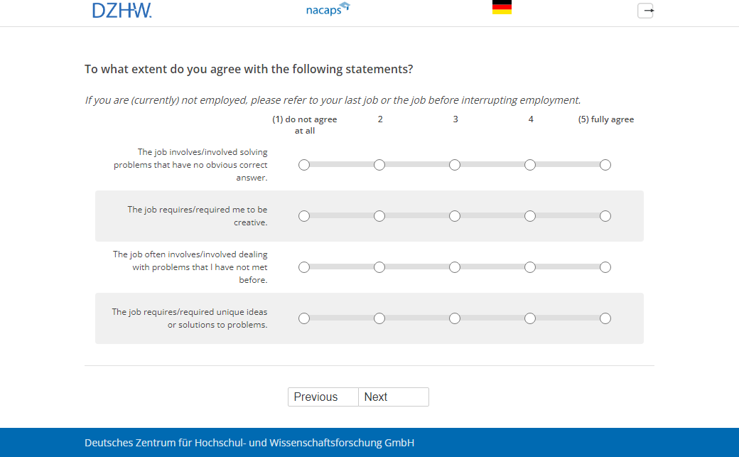 If you are (currently) not employed, please refer to your last job or the job before interrupting employment.