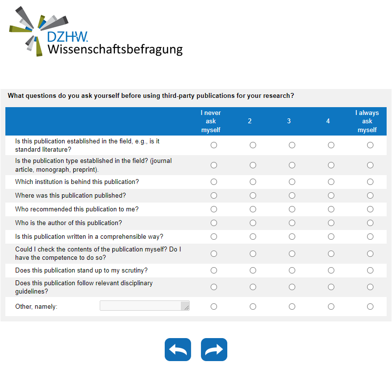 Question ve10: Questionnaire of the DZHW Scientists Survey 2023
